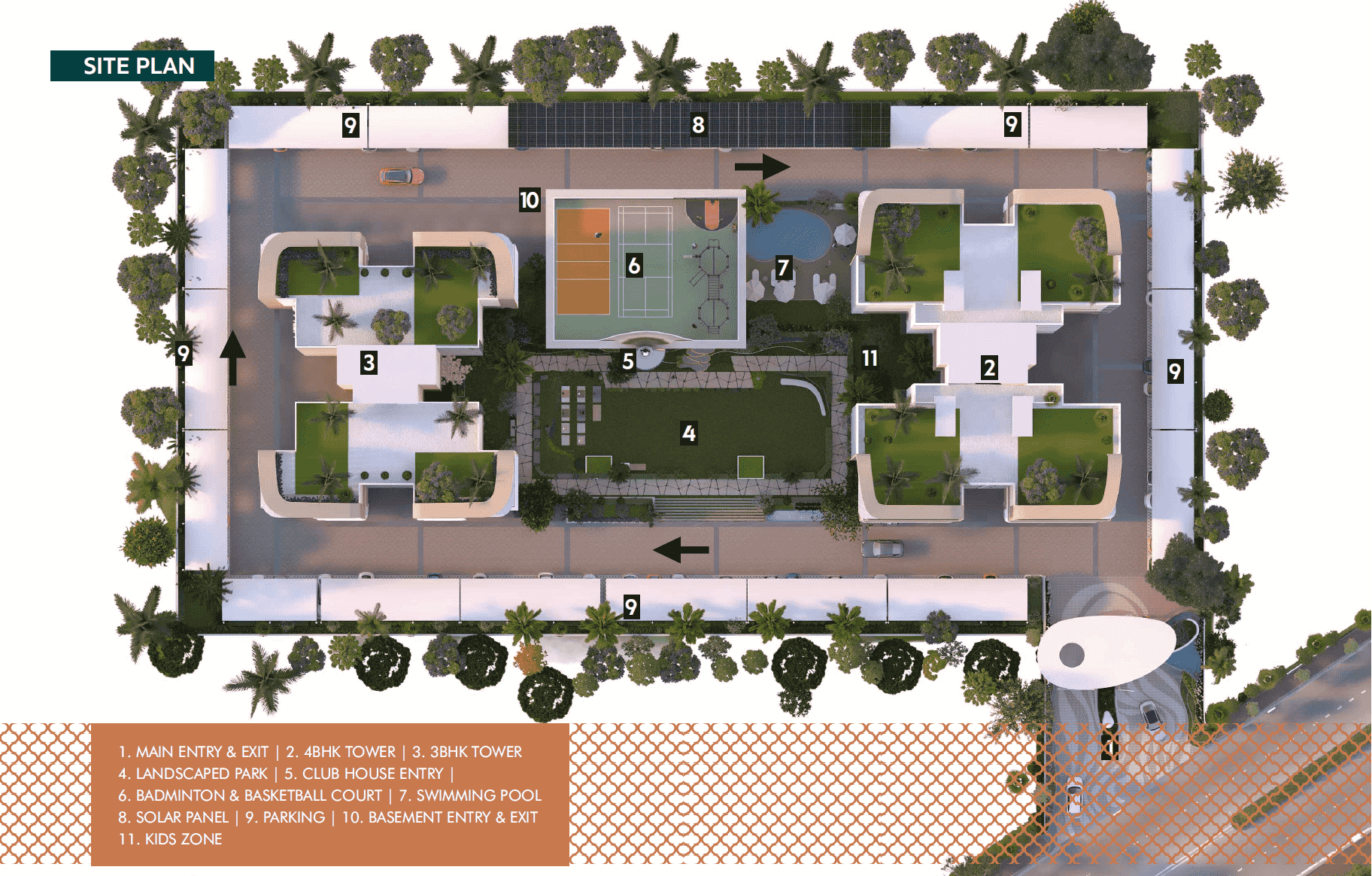 An open air gym spread in a landscaped green area, along with fountains and tree lined boulevards; will give a resident a package of perfect life.