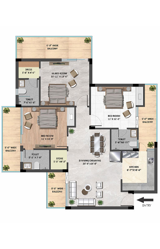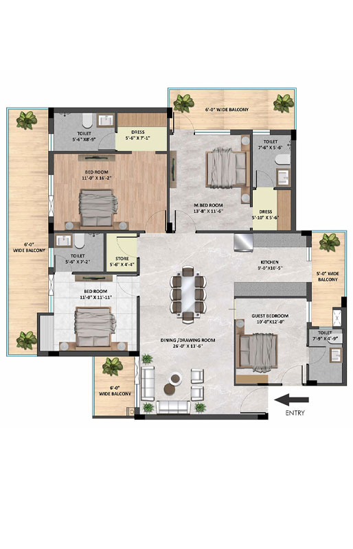 Every floor at Skyline Elevate is designed in a way to co-inhabit luxury, spaciousness and well being. Best material for flooring, paint and electrical equipment has been used. Usage of ultra-modern fittings make every home at Skyline Park look fab. The design of 3/4 BHK apartments are conceived in a way that the inhabiter doesn’t feel a constraint of space and also gets the best of luxury.